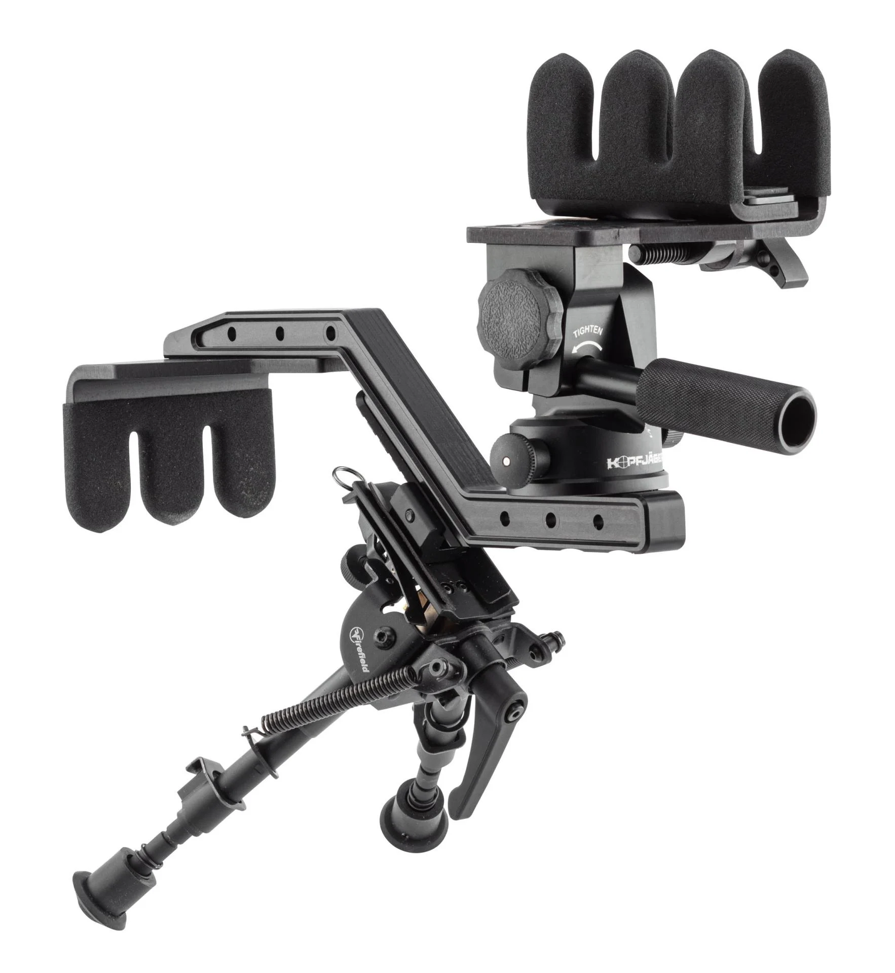 Initialement dédié à un usage professionnel les supports de tir KJI permettait un confort de tir inégalé et une réduction de la fatigue pour un tireur devant garder sa position durant des heures.